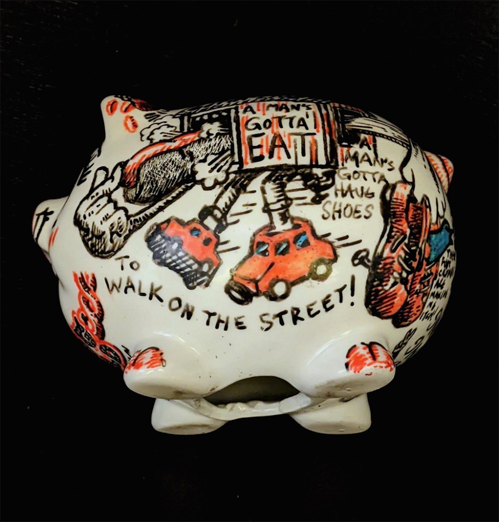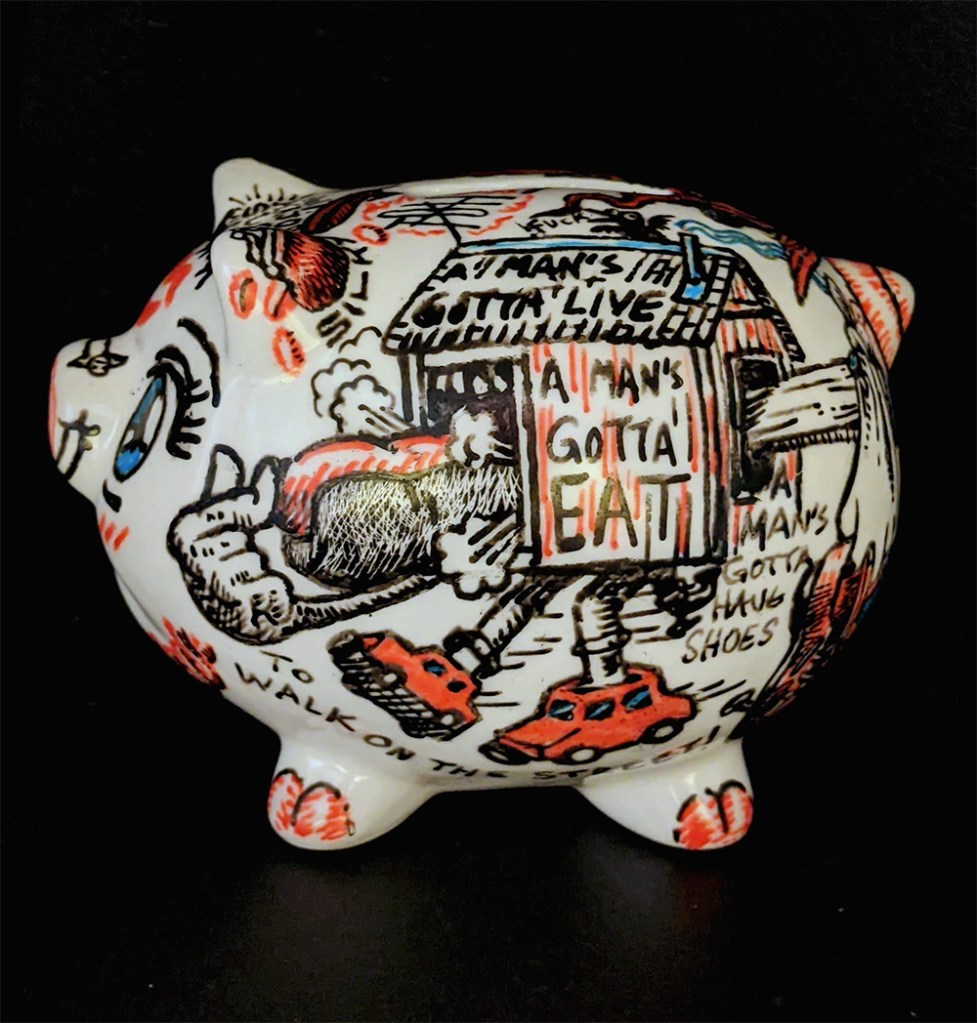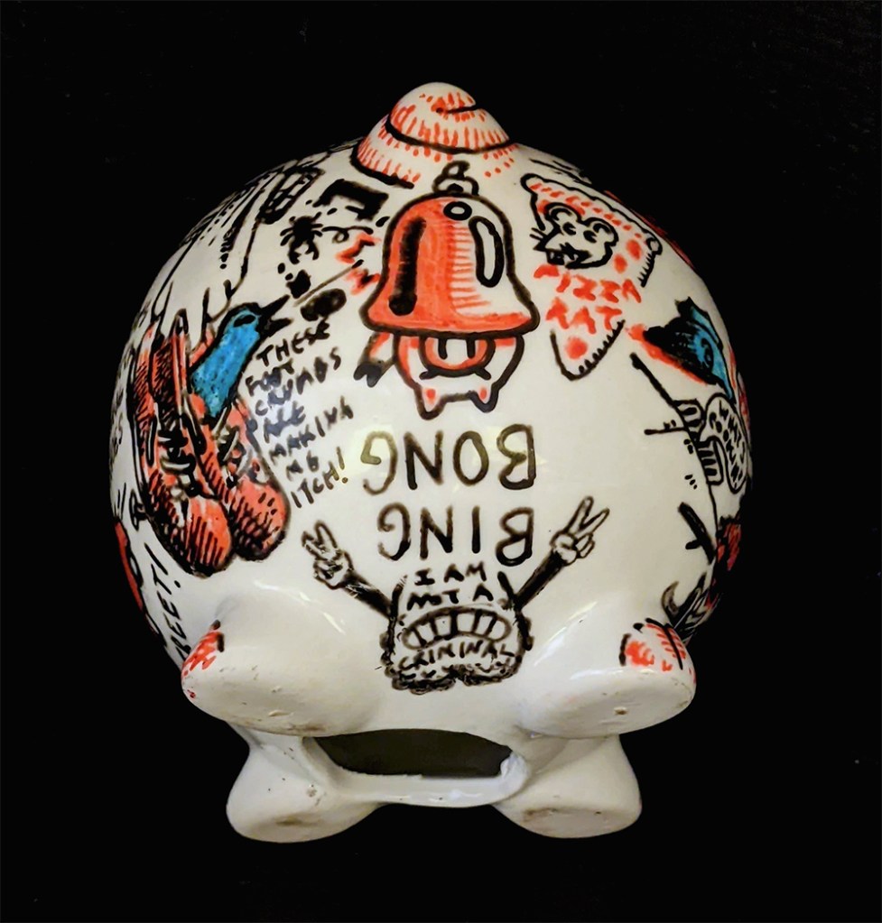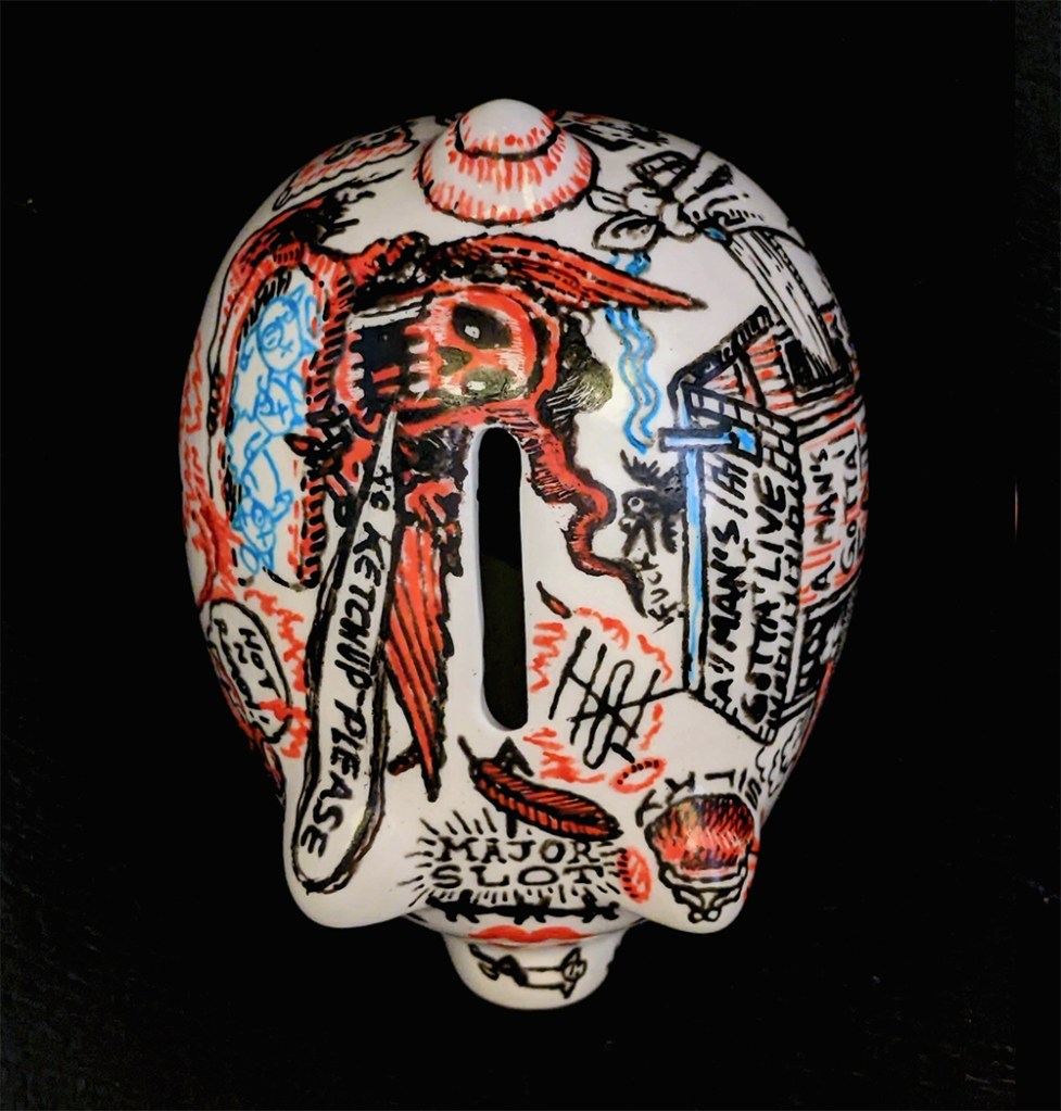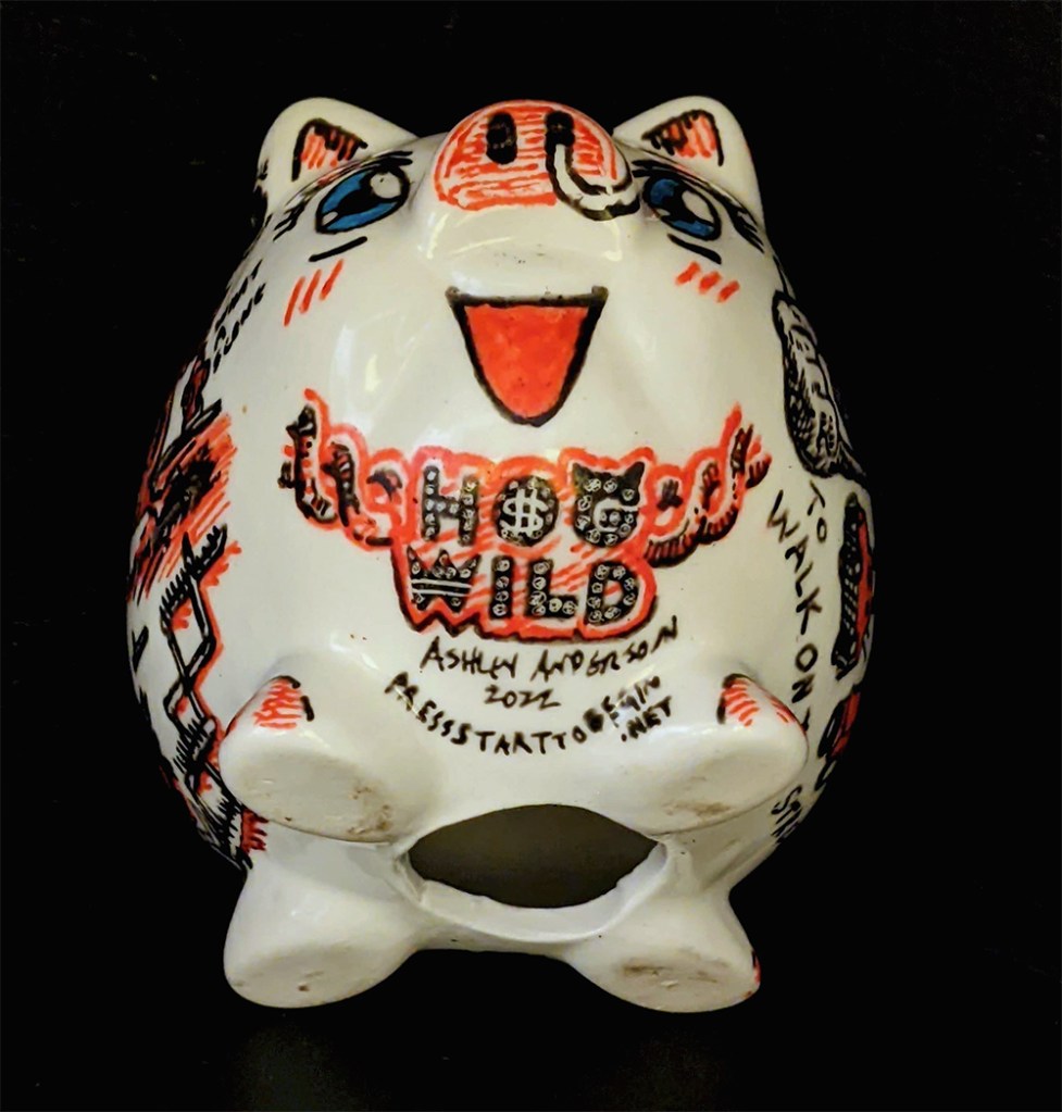Hog Wild 3D, Drawings Porcelain paint on found ceramic piggy bank Share this: Click to share on Facebook (Opens in new window) Facebook Click to email a link to a friend (Opens in new window) Email Click to share on Reddit (Opens in new window) Reddit More Click to share on X (Opens in new window) X Click to share on Tumblr (Opens in new window) Tumblr Click to share on Pinterest (Opens in new window) Pinterest Like Loading...