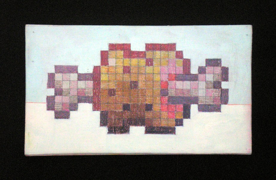 Meat (Enemy Bit) Drawings, Paintings, Pixel Work 2007-2009Acrylic and colored pencil on panel11¾ x 6¾ inches Share this: Click to share on Facebook (Opens in new window) Facebook Click to email a link to a friend (Opens in new window) Email Click to share on Reddit (Opens in new window) Reddit More Click to share on X (Opens in new window) X Click to share on Tumblr (Opens in new window) Tumblr Click to share on Pinterest (Opens in new window) Pinterest Like Loading...