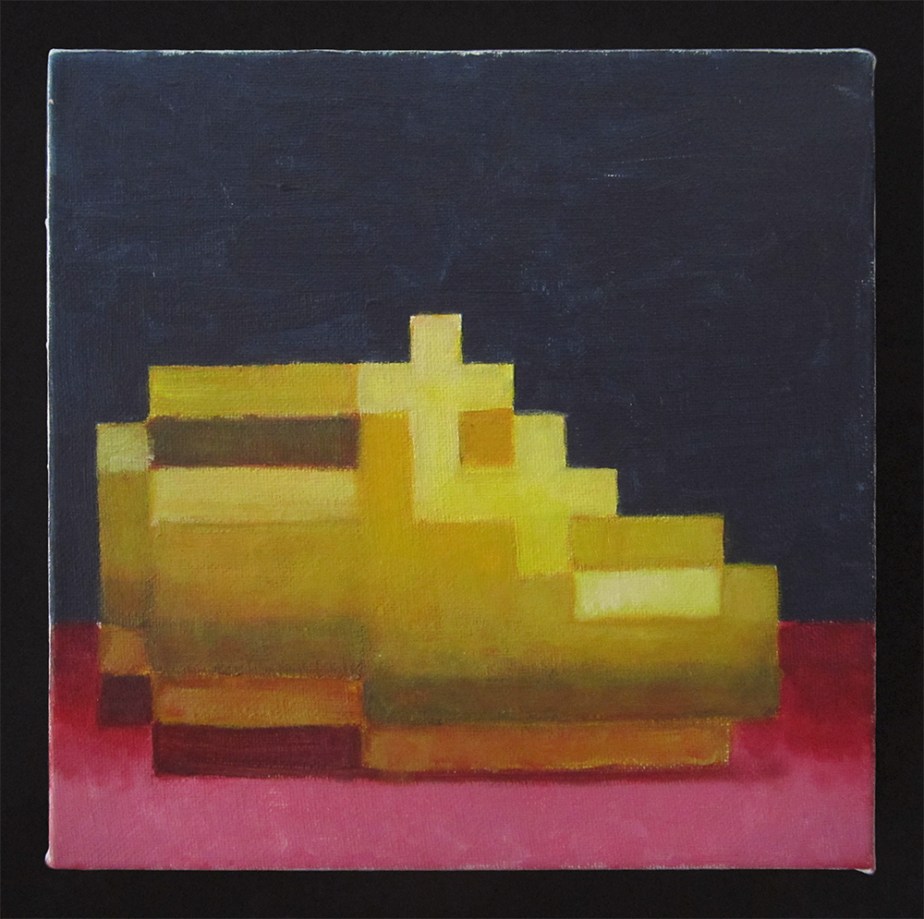 The Old Gold Shoe Paintings, Pixel Work The Old Gold Shoe 2014 Acrylic on canvas 8 x 8 inches Share this: Share on Facebook (Opens in new window) Facebook Email a link to a friend (Opens in new window) Email Share on Reddit (Opens in new window) Reddit More Share on X (Opens in new window) X Share on Tumblr (Opens in new window) Tumblr Share on Pinterest (Opens in new window) Pinterest Like Loading...