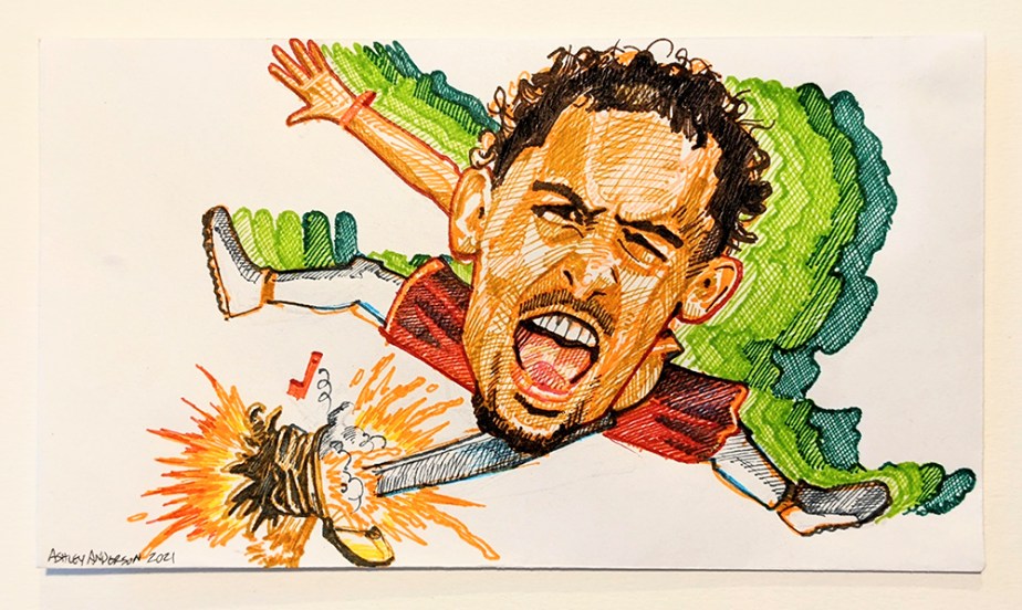 Trae Young Drawings, Illustrations, Portraits 2021Ink on envelope Share this: Click to share on Facebook (Opens in new window) Facebook Click to email a link to a friend (Opens in new window) Email Click to share on Reddit (Opens in new window) Reddit More Click to share on X (Opens in new window) X Click to share on Tumblr (Opens in new window) Tumblr Click to share on Pinterest (Opens in new window) Pinterest Like Loading...